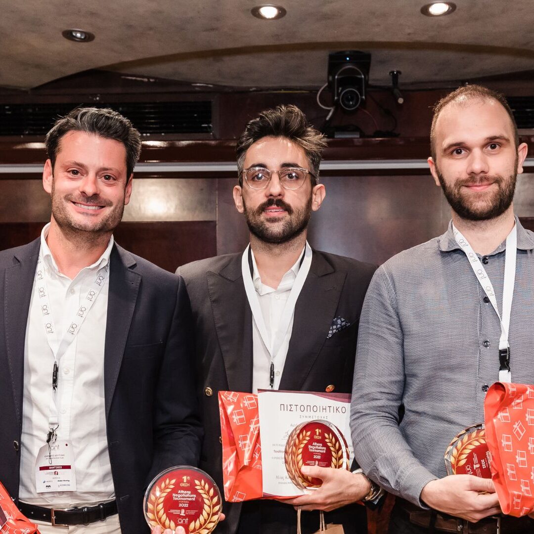 Ο Μεγάλος Τελικός πραγματοποιήθηκε στις 29 Μαΐου στο Ίδρυμα Θεοχαράκη, όπου η εκκίνηση δόθηκε με χαιρετισμούς επιχειρηματικών και μη στελεχών, και συγκεκριμένα από τους: Δρ. Κωνσταντίνος Κασιμάτης, Πρόεδρος του Τμήματος Οργάνωσης και Διοίκησης Επιχειρήσεων του Οικονομικού Πανεπιστημίου Αθηνών, κ. Γεώργιος Δημόπουλος, Αντιπεριφερειάρχης Κεντρικού Τομέα Αθηναίων, κ. Ιωακείμ Καμπασακάλης, Shared Services Director στην Imerys, κ. Γιάννος Μητσός, Senior Advisor στον ΣΕΒ, και κ. Ειρήνη Γεωργαντοπούλου, Marketing & Communications Manager στην Goldair Handling. Στην συνέχεια ακολούθησε η τελική αναμέτρηση, όπου οι δύο ομάδες που προκρίθηκαν στον τελικό, “IPT Negotiators” και “Οι 3 Διαπραγματευτοφύλακες”, έδειξαν άριστες διαπραγματευτικές ικανότητες και δεξιότητες, καταλήγοντας σε ένα “deal” πάνω στην εκπνοή του χρόνου! Νικήτρια αναδείχθηκε η πρώτη ομάδα, αποτελούμενη από τους: κ. Ιωαννίδη, κ. Δογραματζίδη και τον κ. Δουρίδα, ενώ στον χώρο της εκδήλωσης βρισκόντουσαν άτομα από τον φοιτητικό, ακαδημαϊκό και επιχειρηματικό χώρο. Στο σημείο αυτό αξίζει να αναφέρουμε πως οι περσινοί νικητές του ΑΝΤ2021, διαγωνίστηκαν στο διεθνή διαγωνισμό διαπραγματεύσεων, “The Negotiation Challenge”, καταλαμβάνοντας την 4η θέση ανάμεσα σε πολλά διακεκριμένα πανεπιστήμια του κόσμου.