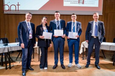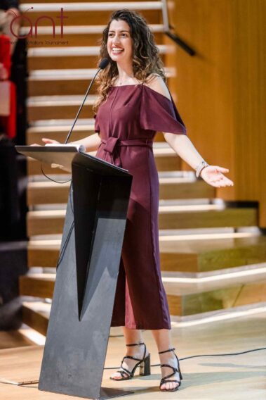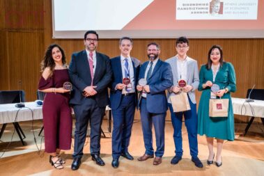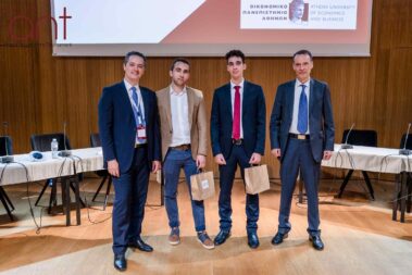 Το κοινό των τριακοσίων ατόμων που απαρτιζόταν από φοιτητές, μέλη της ακαδημαϊκής κοινότητας και εκπροσώπους του επιχειρηματικού χώρου παρακολούθησε την τελετή του Μεγάλου Τελικού, η οποία ξεκίνησε με χαιρετισμό που απηύθυναν επιχειρηματικά και μη στελέχη, και πιο συγκεκριμένα οι: Δρ. Βασίλης Παπαδάκης, Αντιπρύτανης του Οικονομικού Πανεπιστημίου Αθηνών, Δρ. Κωνσταντίνος Κασιμάτης, Πρόεδρος του Τμήματος Οργάνωσης και Διοίκησης Επιχειρήσεων του Οικονομικού Πανεπιστημίου Αθηνών, κ. Κική Σιλβεστριάδου, CEO και Vice President of the Board of Directors της NOVA, κ. Ιωάννα Τζουγκανοπούλου, Head of Learning & Development της PeopleCert, κ. Άγης Μοσχοβάκος, Transfer Pricing Services Partner της PwC, κ. Δημήτρη Αγραφιώτη, Head of Corporate Affairs & Communications της Kosmocar και ο κ. Σπύρος Αρσένης, Head of Business Innovation Unit της Εθνικής Τράπεζας.